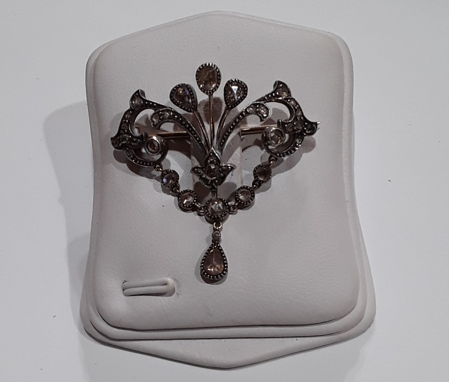Zlatá brož s routami bílé zlato _047T,ryzost 585/1000,váha 7,3g,šířka 3,6cm